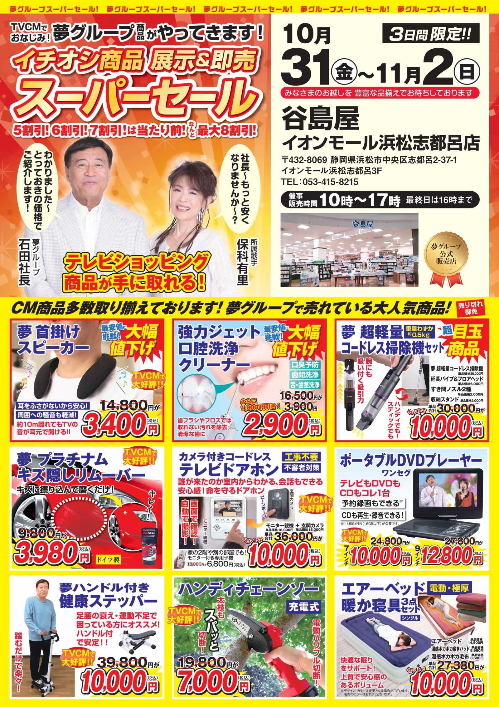 谷島屋イオンモール志都呂にて『 夢グループ イチオシ商品 展示&即場スーパーセール 』開催決定