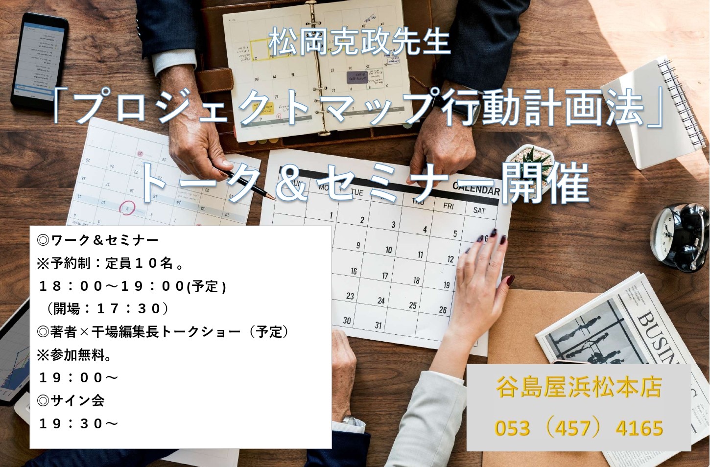 浜松本店店内:1月23日 18時~19時(トーク&セミナー)、19時30~(サイン会)