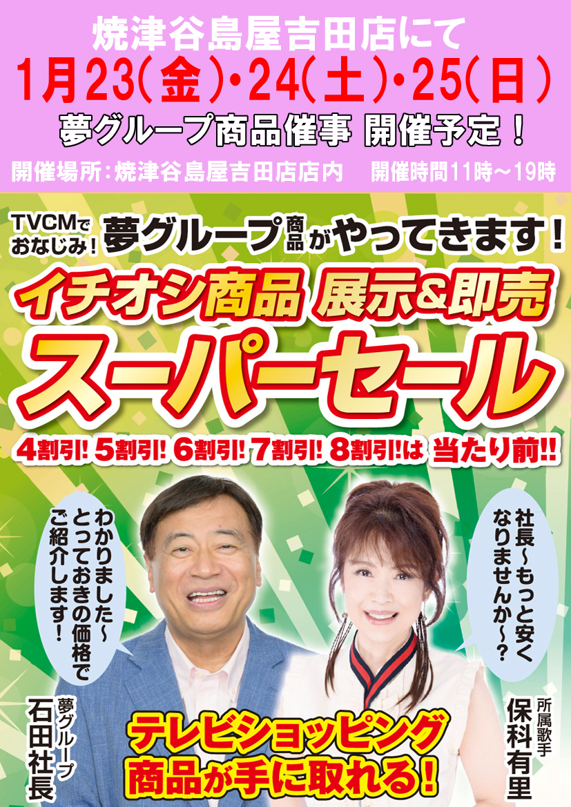 焼津谷島屋吉田店にて『 夢グループ イチオシ商品 展示&即場スーパーセール 』開催決定