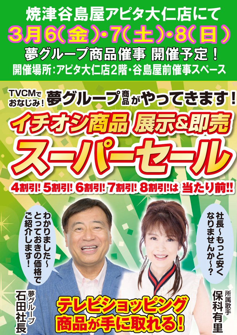 焼津谷島屋吉田店 にて『夢グループ イチオシ商品の展示&即売スーパーセール』開催決定!