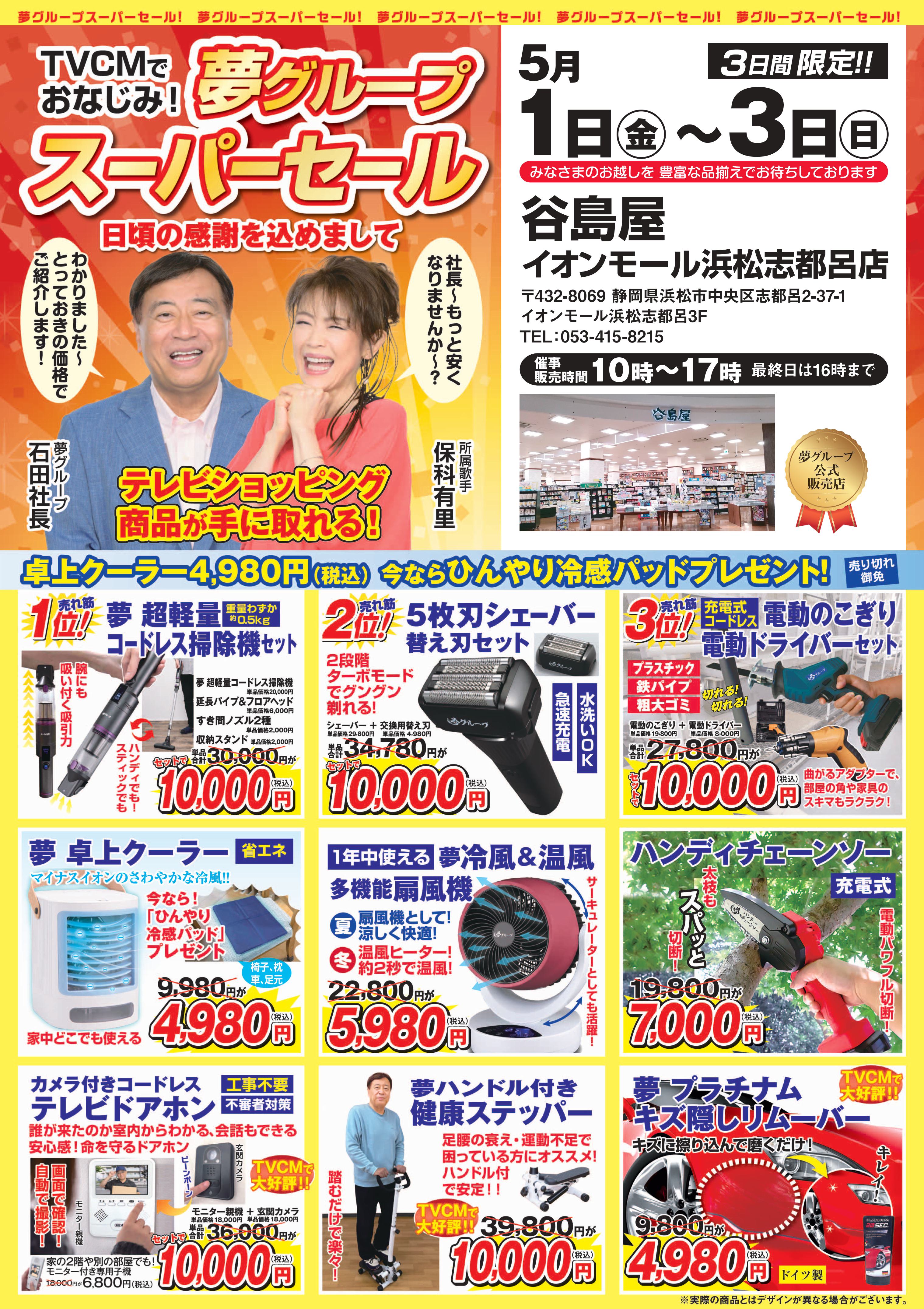 谷島屋イオンモール志都呂にて『 夢グループ イチオシ商品 展示&即場スーパーセール 』開催決定